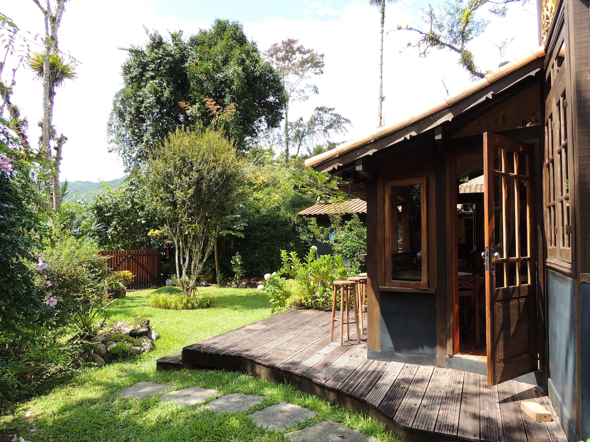 Localizada em Mirantão,região de Visconde de Mauá,a propriedade fica em área de proteção ambiental com total privacidade.Dispõe de casa com 2 quartos,banheiros, sala e cozinha com forno à lenha. Possui também estrutura de lazer com sauna, churrasqueira, forno de pizza, cooktop,banheiro e sala de estar com lareira. Duas piscinas naturais com decks,pequena cachoeira particular,horta orgânica e galinheiro.Frutas,ovos,legumes e verduras ficam à disposição do hóspede de acordo com a época do ano.