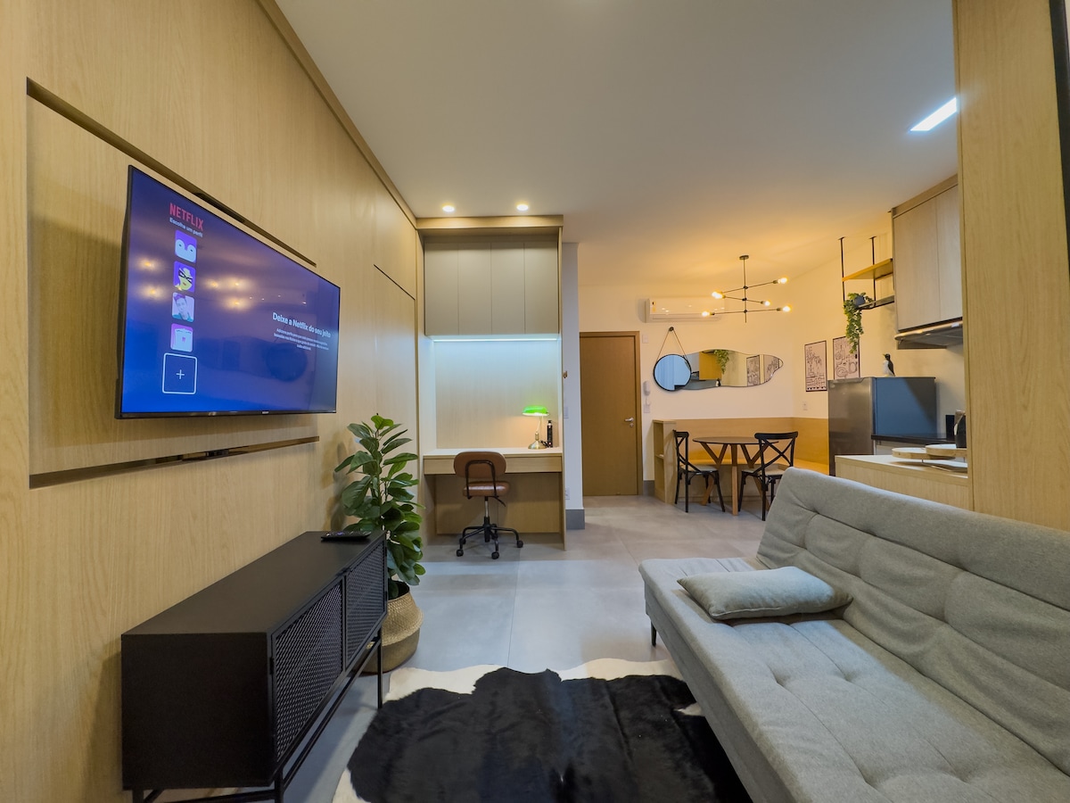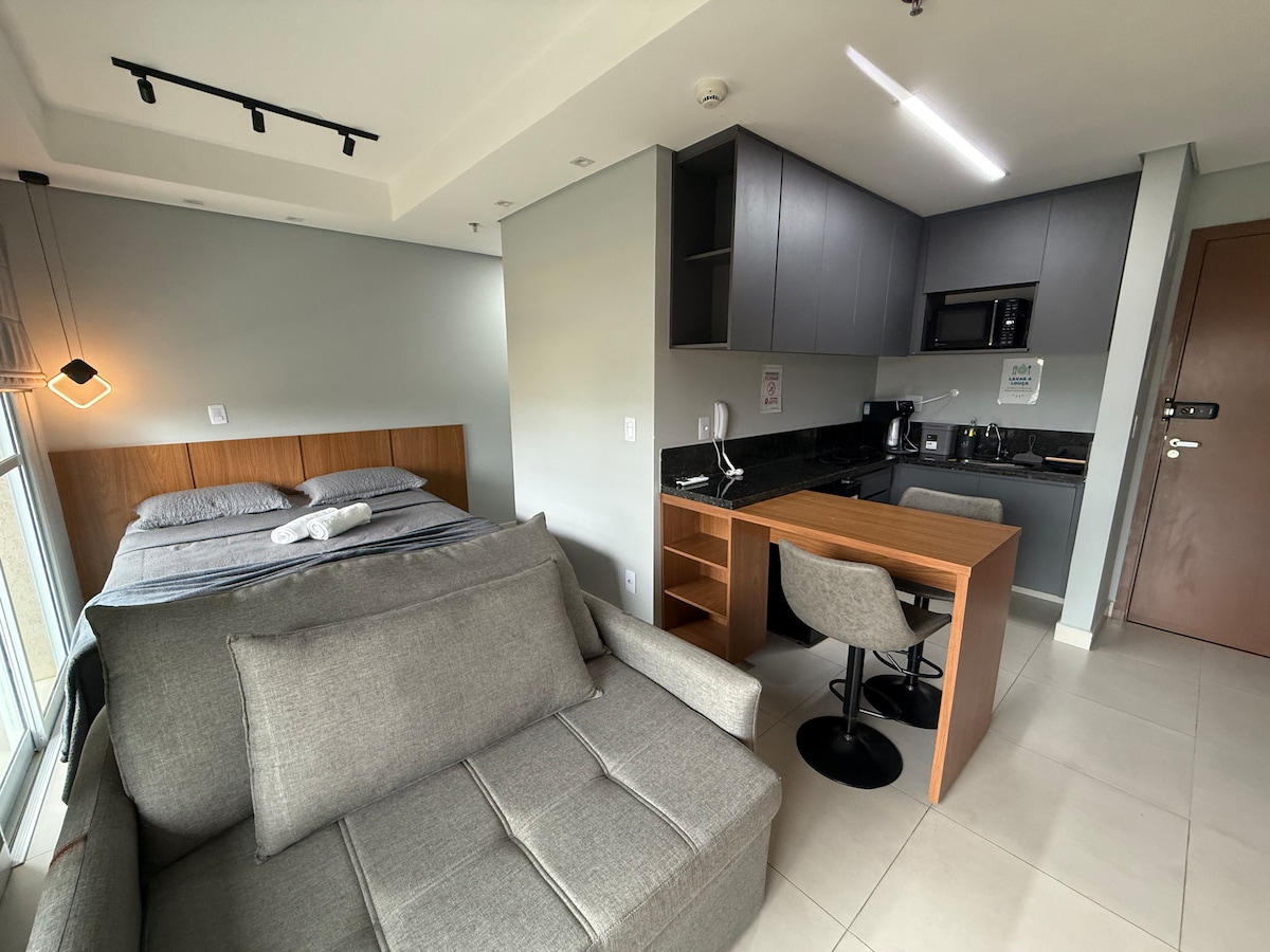 Studio hiện đại và ấm cúng, nằm trước Unaerp, bên cạnh Diễn đàn, Nicnet Arena, siêu thị, nhà thuốc và tiệm bánh. Được trang trí chú ý đến từng chi tiết để cung cấp một môi trường thoải mái và thân thiện để bạn cảm thấy như ở nhà. Căn hộ chung cư cung cấp an ninh 24 giờ, đỗ xe ô tô, phòng giặt ủi kiểu Mỹ và khu vực giải trí hoàn chỉnh,với hồ bơi, phòng tập thể dục, khu vực học tập, chợ mỏ và khu vực thú cưng,lý tưởng để thư giãn và tận hưởng những khoảnh khắc yên tĩnh.