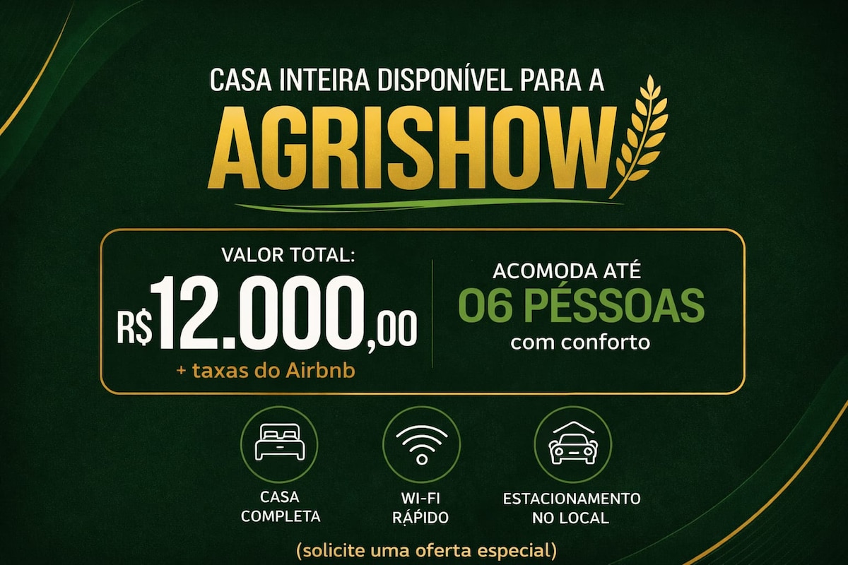 Casa Agrishow com Lazer 3 Suítes Ar eventos