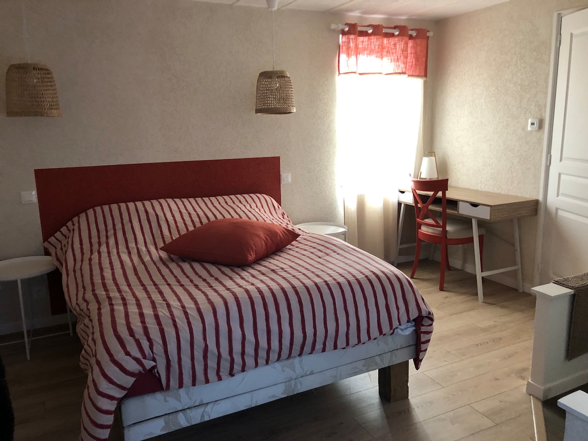 2 chỗ nghỉ phục vụ bữa sáng đầy phong cách này nằm gần trung tâm thành phố Chúng nằm trên tầng hai của nhà chúng tôi. Phòng tắm vòi sen và nhà vệ sinh là riêng tư. Sau một ngày, bạn sẽ có quyền sử dụng hồ bơi (4m x 7m)và vườn, sân trong, trò chơi cờ bàn Từ ngày 10 đến ngày 21 tháng 7, hãy đến và tận hưởng cách nhà 100 mét Đã bao gồm bữa sáng không có khả năng nấu ăn cho bữa ăn của bạn có thể mang theo bữa ăn của bạn và mang chúng đến nhà hoặc trong vườn