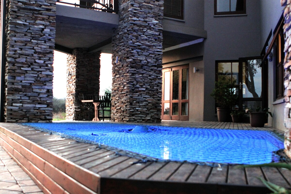 Nơi nghỉ ngơi sang trọng tuyệt đẹp với hồ bơi riêng, braai và khu vực bàn bi-a để giải trí cho khách của chúng tôi nằm trong một sân golf động vật hoang dã xinh đẹp và bất động sản trên sông.
