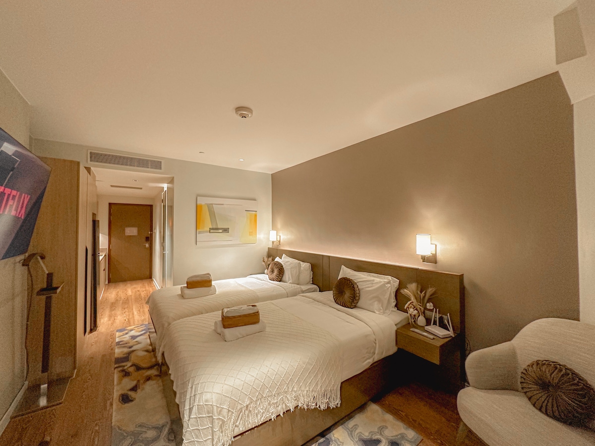Phòng suite 2 giường đơn gần Makati & Rockwell | Hồ bơi + Wifi