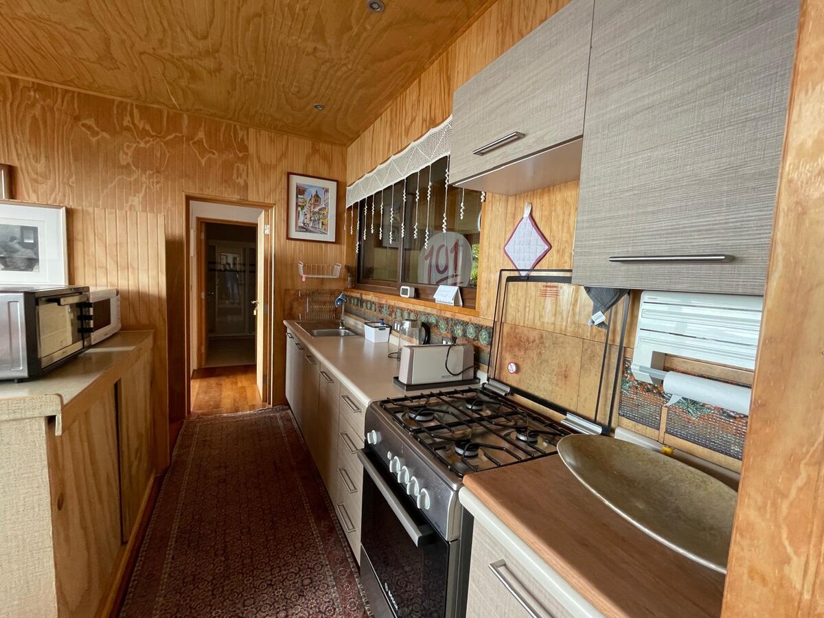 Located 8 blocks from downtown (approx 1200 meters), overlooking Lake Argentino, Cerro Calafate and the Cordillera de los Andes. Built entirely in wood in the typical Patagonian style, with two floors. On the ground floor are the living room, kitchen, restroom bathroom and a sitting area with a single bed. Upstairs the main sleeping area with a double bed and another area with a single bed is located. Deck overlooking the lake.