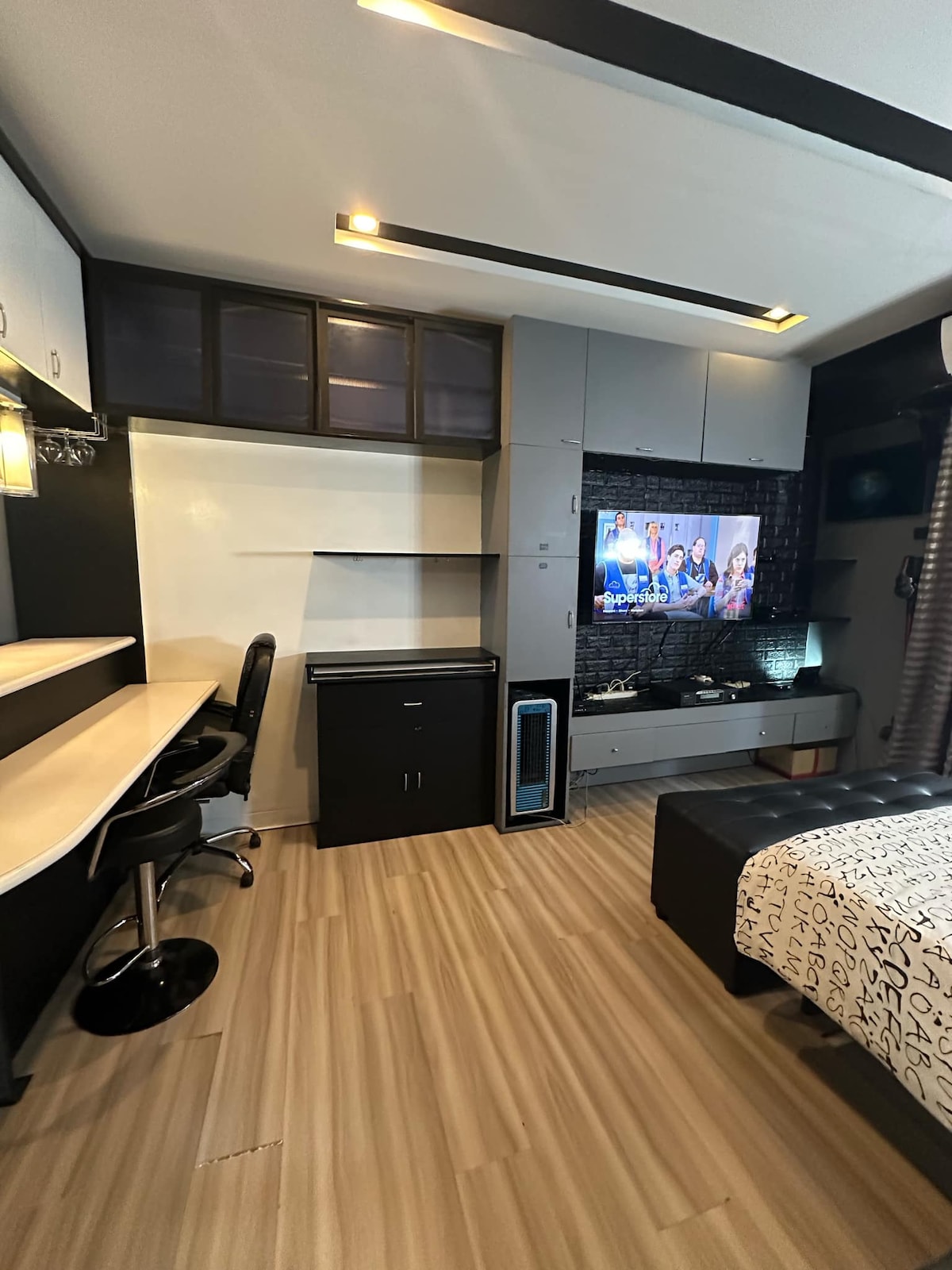 Experience style and convenience in this modern BGC studio! Just a 2-minute walk to Venice Canal Mall, it’s perfect for work and leisure. Enjoy a hidden pullout queen bed, an expanding table for dining or work, and an 84” projector for a cinematic experience. Steps from cafes, groceries, and restaurants, everything you need is within reach. Whether you're unwinding, exploring, or working remotely, this cozy retreat is the ideal staycation spot! 🎬🎮✨