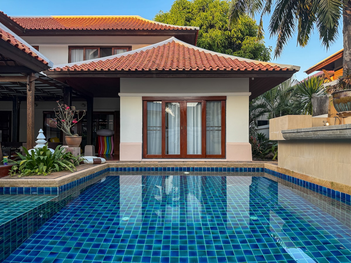 Biệt thự hồ bơi 2 phòng ngủ theo phong cách Thái hiện đại Nằm ngay trung tâm Bãi biển Jomtien, Pattaya. Vị trí số một, gần Jomtien và Bãi biển DongTan. Nhà hàng, quán bar, chợ, ngân hàng, 7/11, v.v. Tất cả đều trong khoảng cách đi bộ ngắn. TukTuk (24h) sẽ đưa bạn đến trung tâm Pattaya và Phố đi bộ trong 10 phút. Biệt thự được trang bị đầy đủ, phòng tắm lớn, phòng ngủ với giường cỡ king, Truyền hình cáp, Internet, nhà bếp, máy giặt, v.v. Hồ bơi riêng, được bao quanh bởi khu vườn nhiệt đới.