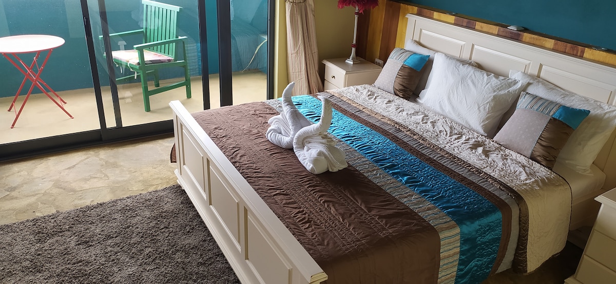 Một căn phòng sang trọng, với một chiếc giường cỡ king và một tác phẩm nghệ thuật thực sự như một tấm ván đầu giường. Ban công kiểu Pháp nhìn ra thung lũng và các bức tường của núi lửa Cova mang đến cho bạn tầm nhìn tuyệt vời và không khí tinh khiết nhất.
