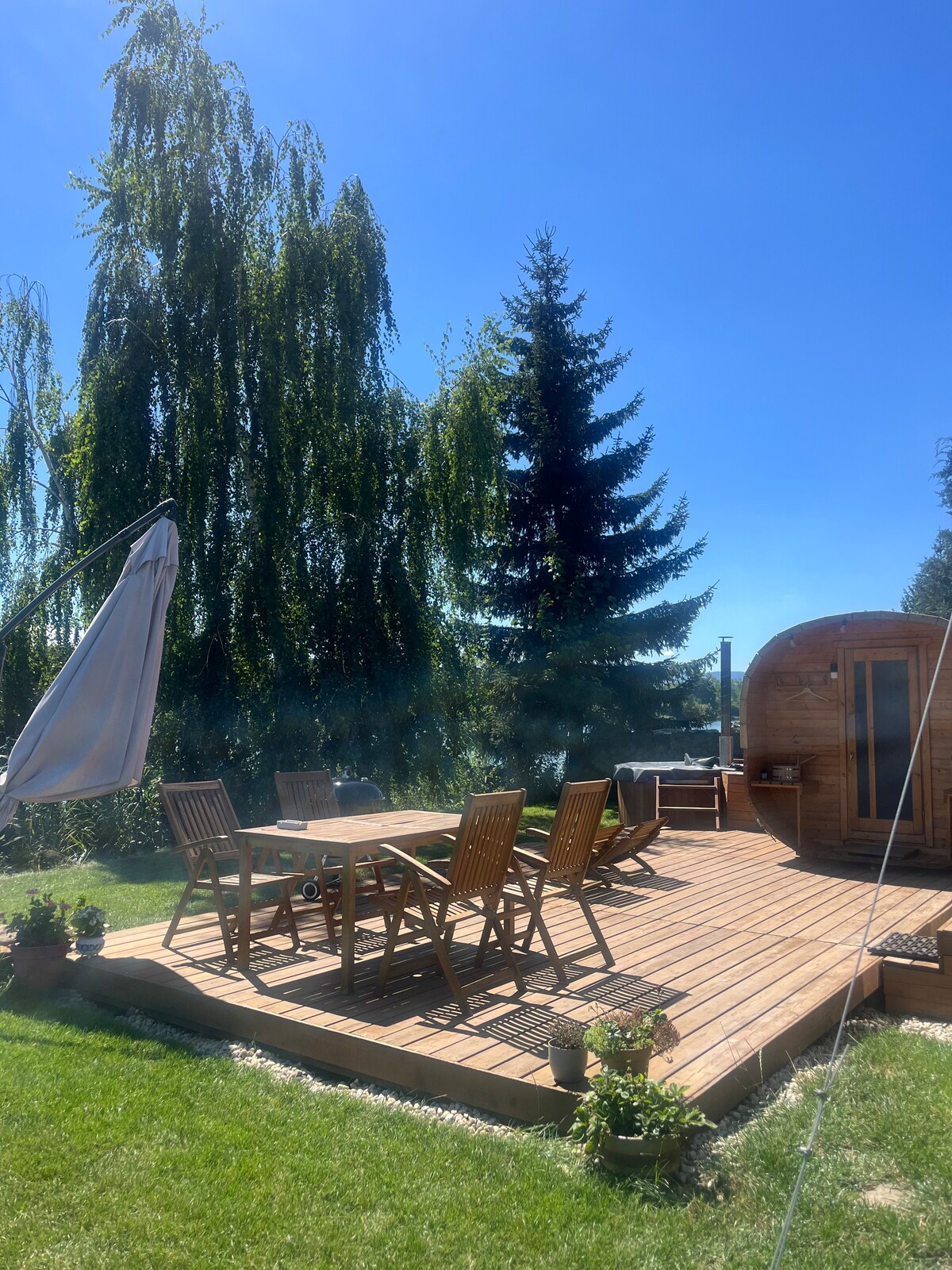 Urlaubsglück am Waldrand ✨ Raus aus dem Alltag, rein in die Natur! Unsere moderne, 2023 fertiggestellte Wohnung liegt idyllisch am Waldrand, mitten in einer Christbaumplantage. Genieße lichtdurchflutete Räume und Top-Ausstattung: • Platz für alle: 2 Schlafzimmer & offene Wohnküche mit Schlafcouch. • Komfort: Bad + separates WC. • Extra-Bonus: Größere Gruppe? Eine weitere Wohnung (6 Betten) befindet sich im selben Haus!