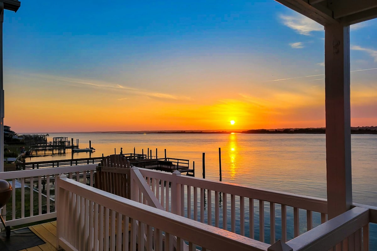 Take a break and unwind at this peaceful oasis with amazing views. Sunset Sound Cottage - Waterfront with sweeping sunset views over Topsail Sound. Explore the surrounding waters from the private dock on the paddle boards and tandem kayaks included with your stay. Close beach access just 2 minute walk to the ocean, with optional parking area. Outdoor shower makes it fun to come back home after a day at the beach, and you'll love relaxing on the back deck to take in those famous Topsail sunsets.