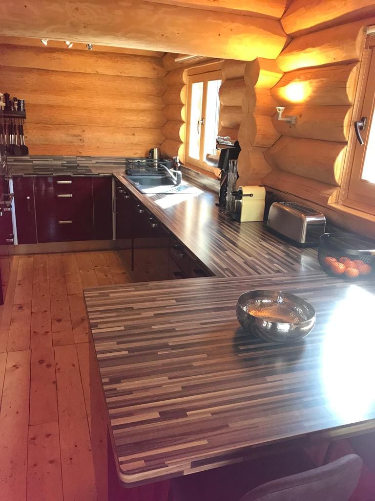 Địa hình tự nhiên rộng lớn, yên tĩnh và bình tĩnh làm cho sự quyến rũ của căn nhà gỗ mới dễ chịu và tươi sáng này ở giữa núi. Nhà gỗ chalet độc lập bao gồm 1 lối vào có tủ quần áo. Phòng khách, khu vực ăn uống và khu vực tiếp khách. Bếp mở. Nhà vệ sinh riêng bằng máy rửa tay. Tầng trên 1 phòng ngủ (1 giường 2 giường & 1 giường 1 người), 1 phòng ngủ (2 giường 1 người). Phòng tắm có bồn cầu. Sân thượng (45 m² với thịt nướng và ghế bành). Đất (1500 m²).