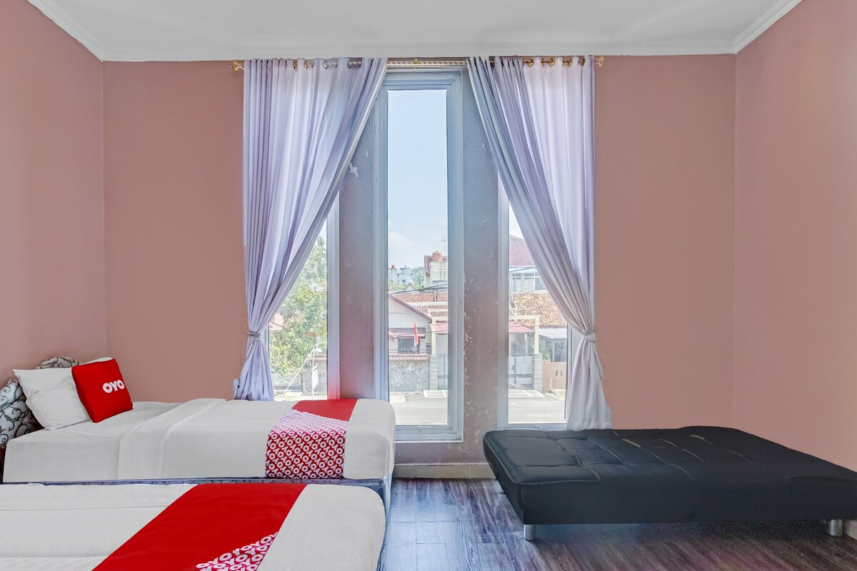 This cozy homestay in Bandar Lampung 🌸 offers air-conditioned family rooms with private bathrooms, free WiFi, a work desk, TV, and toiletries. Guests enjoy a lounge, 24-hour front desk, housekeeping, room service, and free parking. 🌼 Services include express check-in/out, security, and luggage storage. A halal Asian breakfast is served daily. 🌺 Located 25 km from Radin Inten II Airport, near Taman Dipangga.