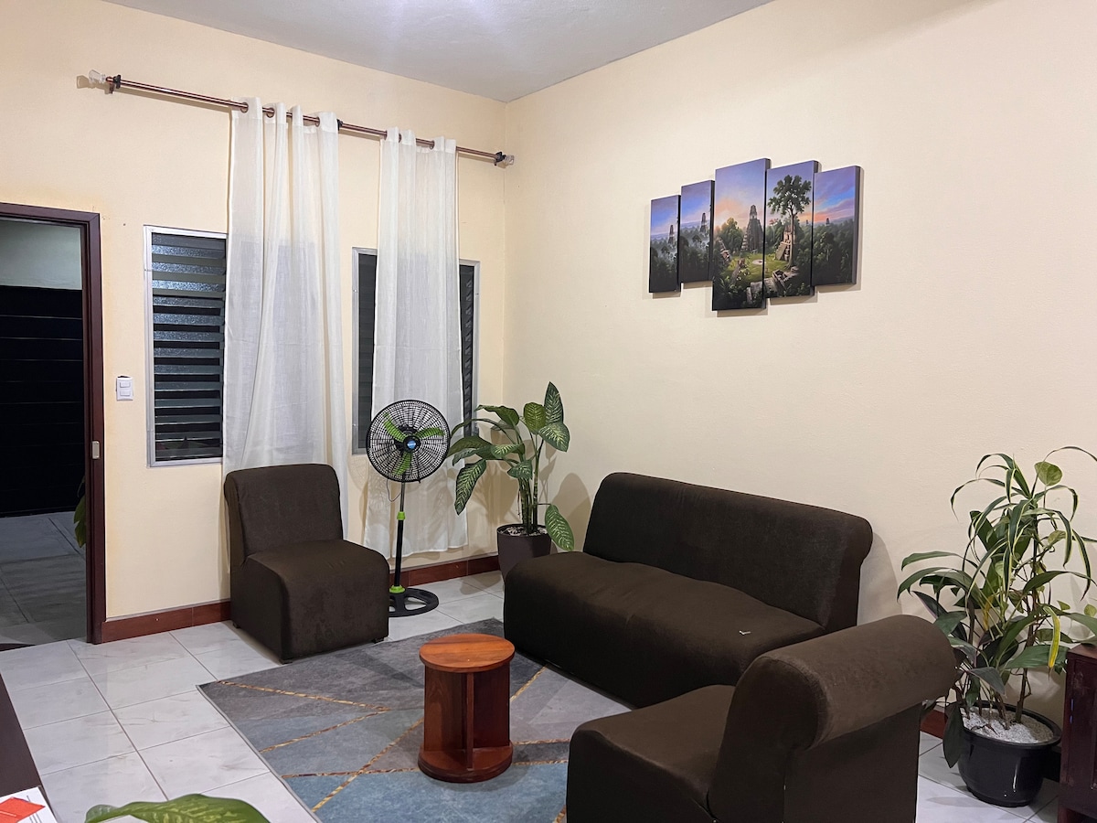Chỗ ở đầy phong cách này lý tưởng cho các chuyến đi nhóm. Lý tưởng để xem xét tuổi già của cả gia đình bạn ở một nơi thanh lịch, dễ dàng đến các nhà hàng và trung tâm mua sắm 2 km từ đảo Flores 53 Km từ Parque Tikal, 2 km từ sân bay, hướng tiếp cận dịch vụ giao đồ ăn. Chỗ ở: Chúng tôi đang ở trung tâm thành phố, một nơi an toàn để đi bộ hoặc tập thể dục vào buổi sáng. Bạn có thể sử dụng tất cả các phụ kiện trong nhà mà không mất thêm chi phí.