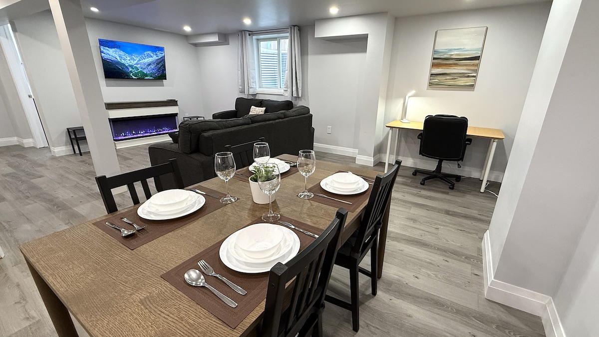 Studio 1 giường ấm cúng và riêng tư, lý tưởng cho thời gian ở ngắn hoặc kéo dài, được trang bị đầy đủ tiện nghi để thuận tiện và thư giãn. ✔︎ Phòng riêng rộng rãi có bồn tắm đầy đủ ✔︎ TV 4K 55 inch với Netflix, Prime, Crave, Fibe TV, YouTube, v.v. ✔︎ Wifi siêu nhanh ✔︎ Tự nhận phòng ✔︎ Máy trạm ✔︎ 5 phút lái xe - 401, Trung tâm thành phố, Trung tâm thương mại, Cửa hàng tạp hóa, Nhà thuốc, Nhà hàng, Cineplex. ✔︎ Chỗ đỗ xe miễn phí trên đường lái xe vào nhà ✔︎ Máy giặt và máy sấy trong nhà ✔︎ Bếp nhỏ - Tủ lạnh, lò vi sóng, ấm đun nước, máy nướng bánh mỳ, máy pha cà phê, dụng cụ và đồ dùng.