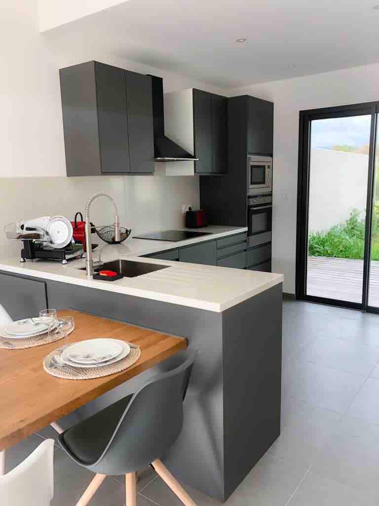 biệt thự mini hai tầng trong một khu dân cư xinh xắn ngay trên mặt nước, cách biển 30 m bằng cách vào trực tiếp 2 sân thượng nhìn ra biển 45m2 của 2/5 người (tối đa 4 người lớn) ở tầng trệt: sân thượng với đồ nội thất sân vườn cho bữa trưa phòng khách với 1 giường đôi (và 1 giường tầng cho 1 trẻ em) nhà bếp được trang bị nhà bếp có vòi hoa sen, bồn rửa nhà vệ sinh riêng ở tầng 1: phòng ngủ chính với giường đôi, sân thượng tắm nắng tuyệt đẹp với tầm nhìn ra biển XE THIẾT YẾU chỉ được phép mang theo 1 thú cưng