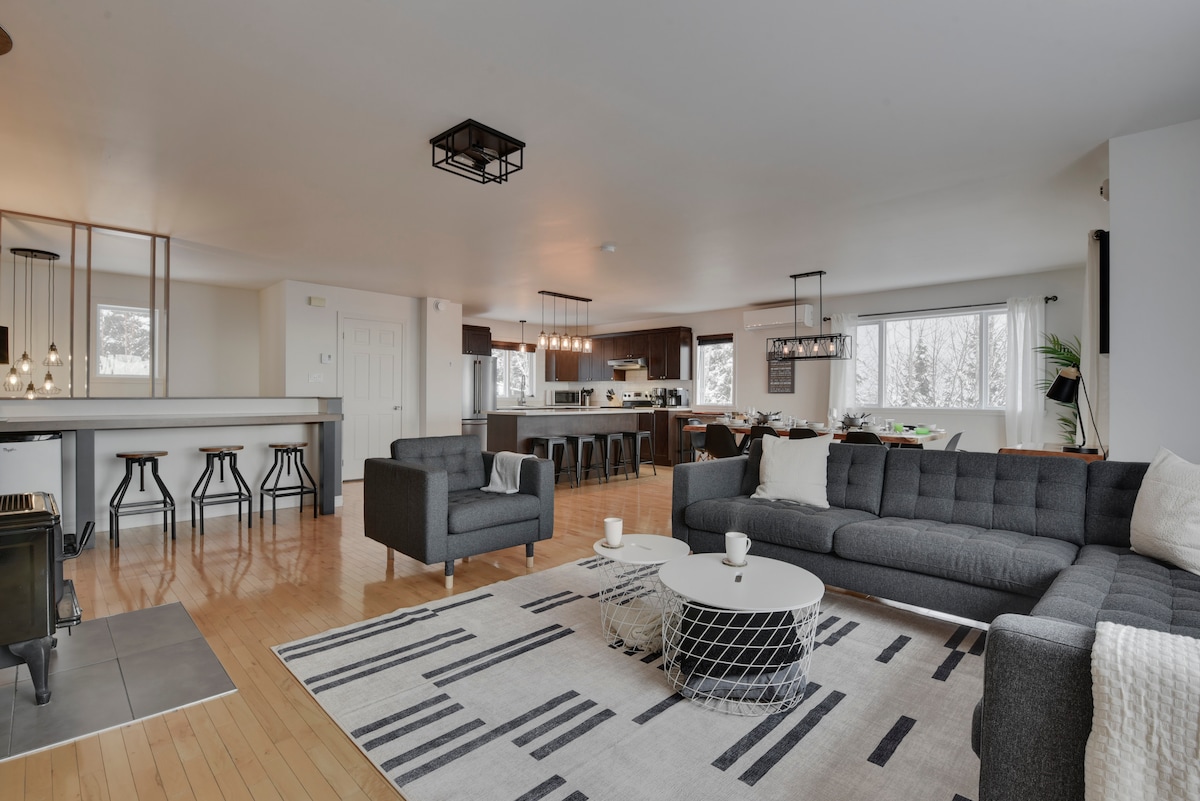 Trải nghiệm 7 năm xuất sắc của Chủ nhà siêu cấp tại thiên đường Charlevoix hiện đại này. Nằm trên một ngọn núi, nơi nghỉ dưỡng Zen của chúng tôi có cửa sổ cao bằng rừng và internet cáp quang tốc độ cao. Chỉ cách đỉnh Le Massif 10m, cách các quán rượu và phòng trưng bày của Baie-St-Paul 15m và cách Thành phố Quebec 1 giờ. Tận hưởng "Sự ấm cúng của miền Bắc" trong khu vực sinh hoạt rộng rãi được thiết kế để dành thời gian chất lượng. Lý tưởng cho những chuyến đi yên tĩnh; không tổ chức tiệc tùng hoặc sự kiện nào. Nơi nghỉ ngơi bên sườn núi để thư giãn và khám phá đang chờ bạn. CITQ #298792
