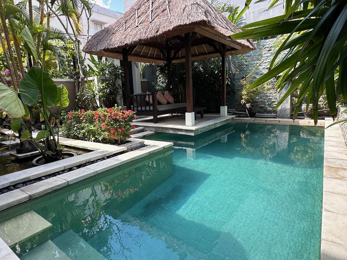 Tận hưởng thời gian riêng tư lãng mạn của bạn trong một khu phức hợp sang trọng, gần một lựa chọn tuyệt vời các quán cà phê, nhà hàng và câu lạc bộ bãi biển đẳng cấp thế giới. Nhưng hoàn toàn ẩn mình trong một khu biệt thự thanh bình và yên tĩnh. Biệt thự này có bồn tắm khép kín và có hồ bơi nhúng hoàn hảo. Thưởng thức bữa sáng nổi dưới các tấm gỗ với ánh sáng mặt trời nhẹ nhàng chiếu qua. Thư giãn trên túi đậu hoặc ghế tắm nắng theo lựa chọn của bạn trong khi ngắm nhìn khu vườn.
