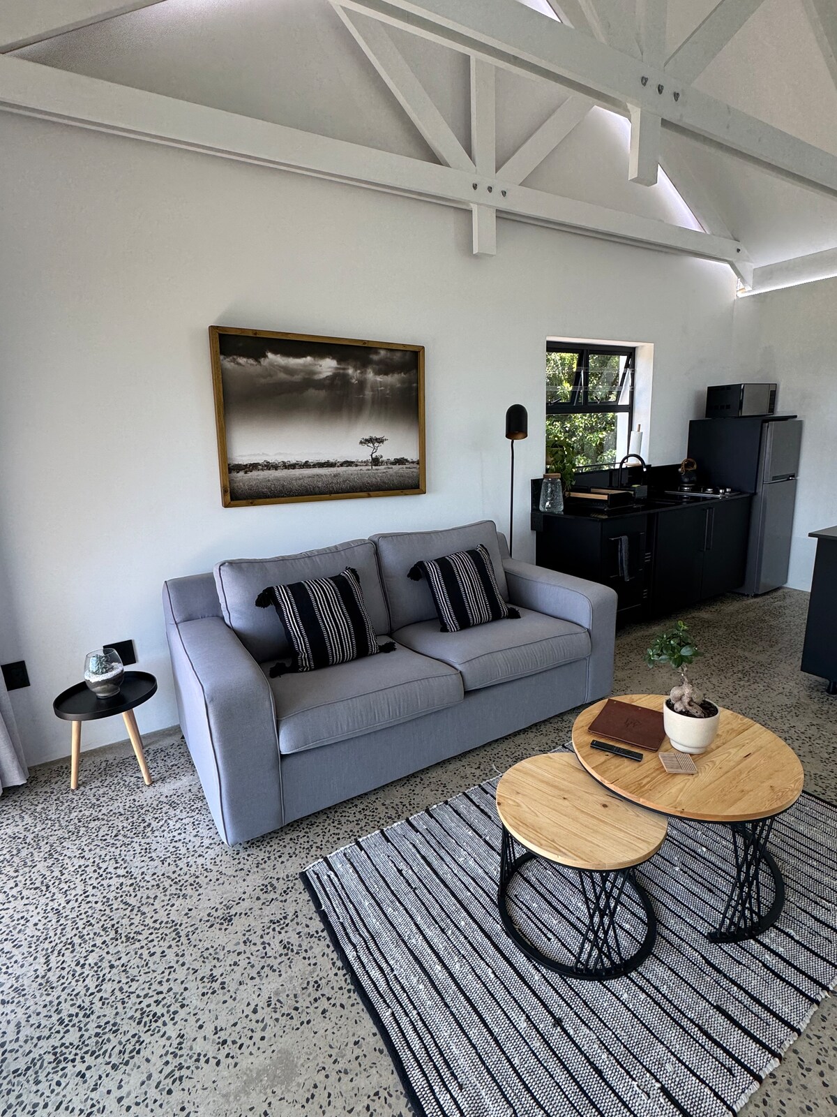 Căn hộ 45 m2 rộng rãi của chúng tôi nằm ngay trung tâm Thị trấn cảng Thesen. Chúng tôi có một hệ thống năng lượng mặt trời để cung cấp điện trong thời gian ngừng hoạt động. Nhà hàng tuyệt vời cách đó vài phút đi bộ, nổi tiếng nhất là "Ile de Pain" nằm bên kia đường để ăn sáng và ăn trưa. Knysna Waterfront chỉ cách 10 phút đi bộ dọc theo một con đường đắp cao đẹp như tranh vẽ nhất được bao quanh bởi đầm phá từ nơi người ta có thể ngắm hoàng hôn tuyệt đẹp. Chúng tôi cung cấp xe đạp leo núi trong suốt thời gian bạn lưu trú với một khoản phí danh nghĩa.