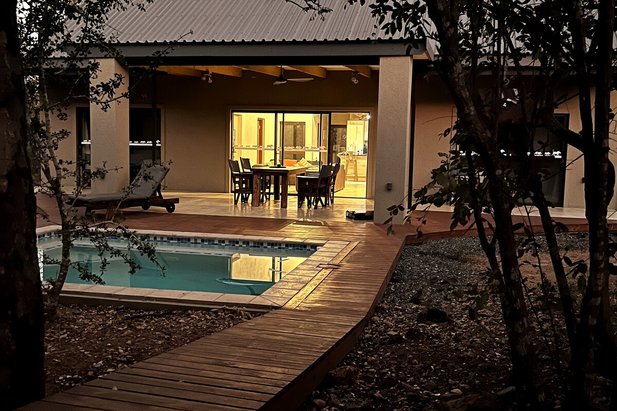 Welcome to Ubuntu Luxury Villa, a private 3-bedroom retreat in Hoedspruit, South Africa. Located on the Hoedspruit Wildlife Estate, enjoy free-roaming wildlife, a 24m² private pool, viewing deck, and spacious boma. Accommodating 6 guests (children 6+), the villa features a solar & battery backup system. Explore Kruger National Park and Blyde River Canyon, both nearby. Experience luxury and nature at Ubuntu Luxury Villa – your gateway to the African bush.