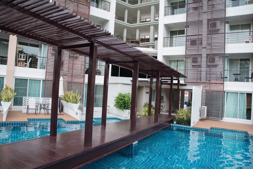 Căn hộ một phòng ngủ rộng 40 m2 ở tầng 5 với tầm nhìn tuyệt vời ra hồ bơi. Chúng tôi cung cấp một kỳ nghỉ thoải mái đáng nhớ với nhà bếp được trang bị đầy đủ tiện nghi, khu vực chung rộng 4.700 m2 bao gồm hồ bơi miễn phí lớn với bê ̉ su ̣ c Jacuzzi ngoài trời được bao quanh bởi cảnh quan rừng mưa nhiệt đới, trung tâm thể dục, sảnh tiếp khách, khu vực chức năng riêng và 2 phút đi bộ ra bãi biển. Tọa lạc ngay cạnh khu nghỉ dưỡng biển Regent Cha Am nổi tiếng.