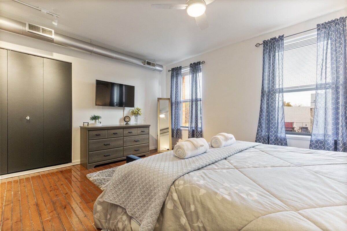 1 pho ̀ ng ngu ̉ South Philly Flat đi bộ đến ga tàu/thể thao/ẩm thực+