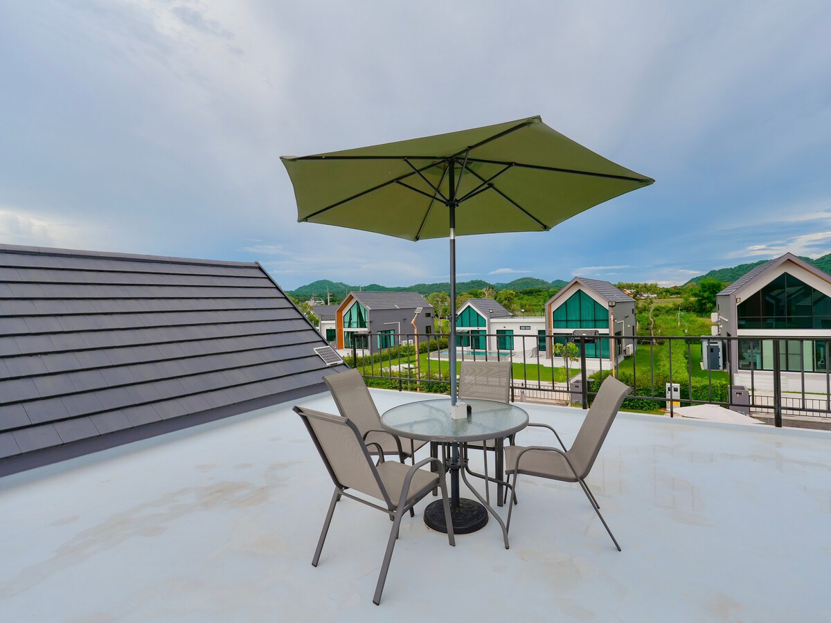 Mountain view pool villa with roof terrace