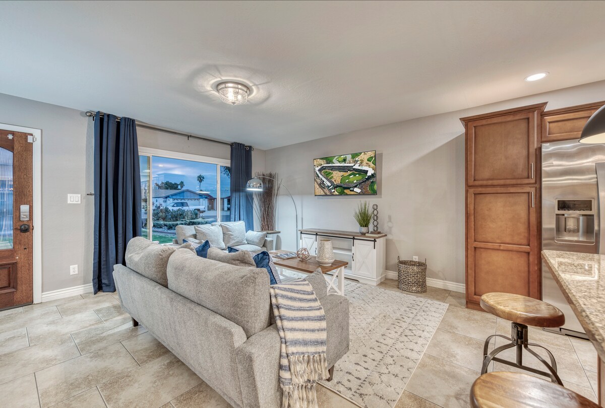 Chào mừng bạn đến với Scottsdale Great Escape, nơi nghỉ dưỡng rộng rãi và đầy nắng của bạn. Bố cục mở mời gọi sự phong phú của ánh sáng tự nhiên, tạo ra một bầu không khí ấm áp và hấp dẫn. Cho dù bạn ở đây để làm việc hay thư giãn, chúng tôi đã bảo vệ bạn với WiFi tốc độ cao trong không gian làm việc chuyên dụng, bếp đầy đủ tiện nghi, sân sau thú vị với lò nướng ngoài trời và ghế sofa ấm cúng, nơi bạn có thể thư giãn và thưởng thức các chương trình truyền hình yêu thích của mình. Để thuận tiện hơn, có một nhà để xe kèm theo.