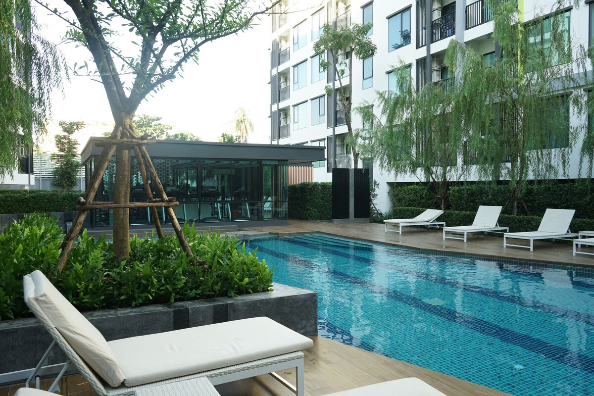 A26/Căn hộ tối giản cao cấp/Gần onnut BTS/Hồ bơi/Wifi/Bếp/Khử trùng cho mỗi khách
