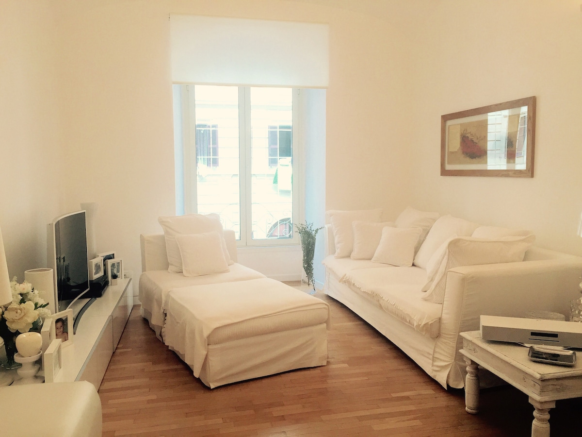 Lovely 70 m2 apartment on the 3rd floor, in the heart of the Monti district, a few steps from the Colosseum, the Fori Imperiali and 3 minutes from the Cavour metro. Two double beds, 2 bathrooms, large terrace where you can eat or sunbathe, tastefully renovated. Regularly registered with the Municipality of Rome and the Lazio Region