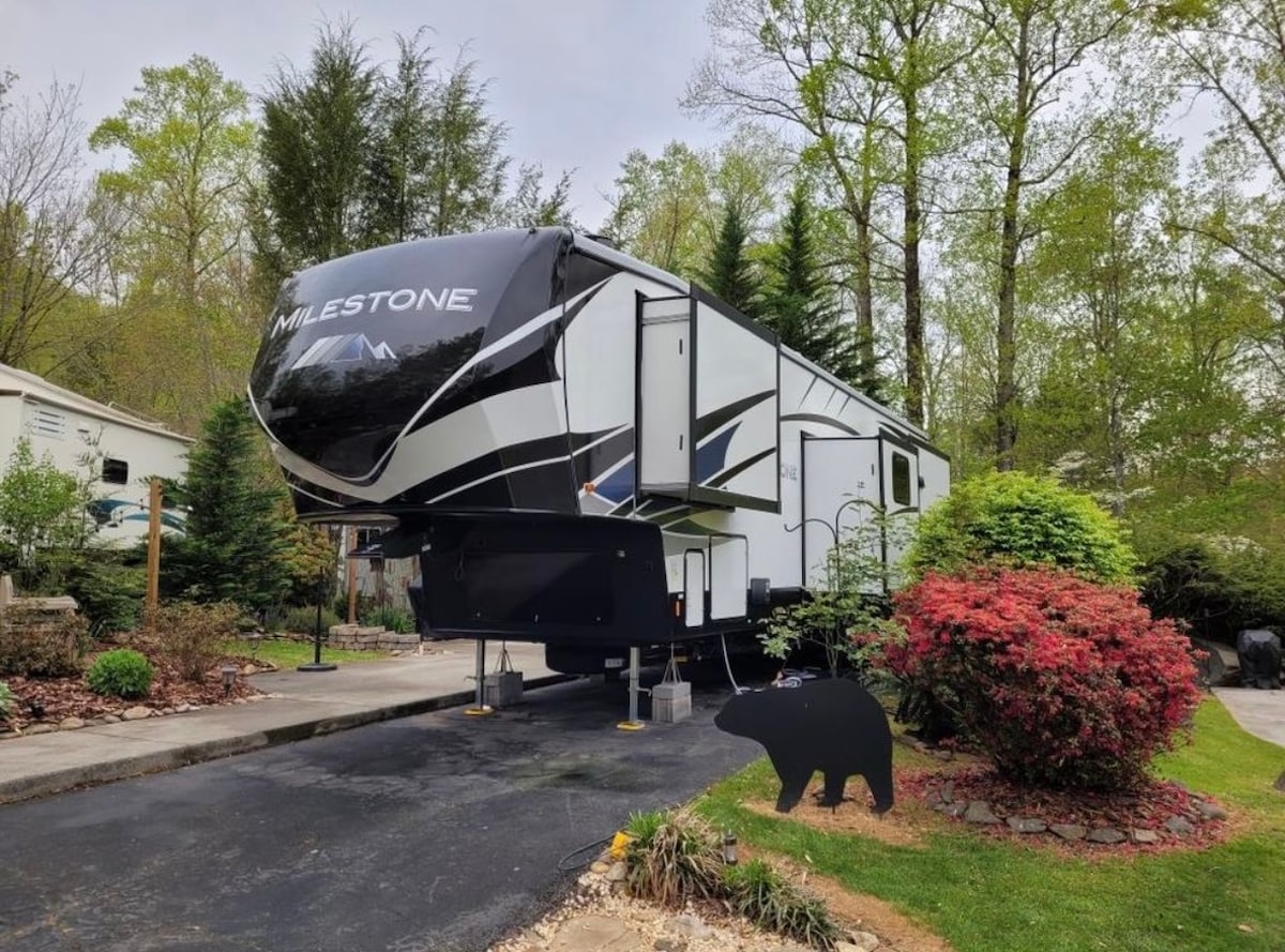 Reconnect with nature at this unforgettable escape. Dolly Parton's inspired "Backwoods Barbie" brand new RV offers amenities of modern glamping for a bargain price. Located just minutes from downtown and all attractions but yet far enough from hustle and bustle of busy tourist town. Enjoy your unforgettable and most affordable way to vacation in Dolly's Smoky Mountains and relax by the fire pit, under the stars after a long day of adventures 💞
