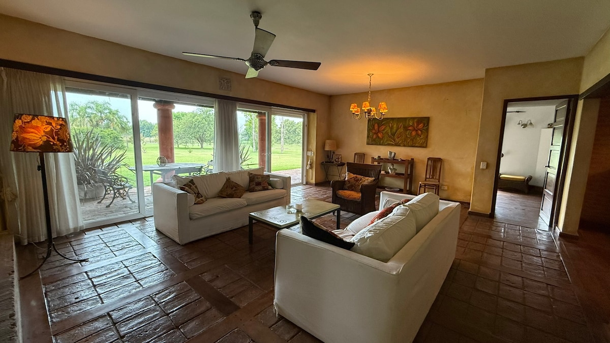 Nhà một tầng, sáng sủa và đầy đủ chức năng, hoàn hảo để thư giãn. Nằm trong cộng đồng khép kín độc quyền của Tessalia, ngay trung tâm khu vực polo của Argentina, Paraje Ellerstina và chỉ cách Buenos Aires 50 phút. Ngôi nhà có hơn 1.000 m² vườn riêng, vườn rau hữu cơ, thùng ủ phân, Wi-Fi cáp quang, điều hòa không khí trong mỗi phòng và bao gồm ga trải giường. Phù hợp với thú cưng: chúng tôi chào đón c*ó! Theo dõi chúng tôi trên @casaaguaribay