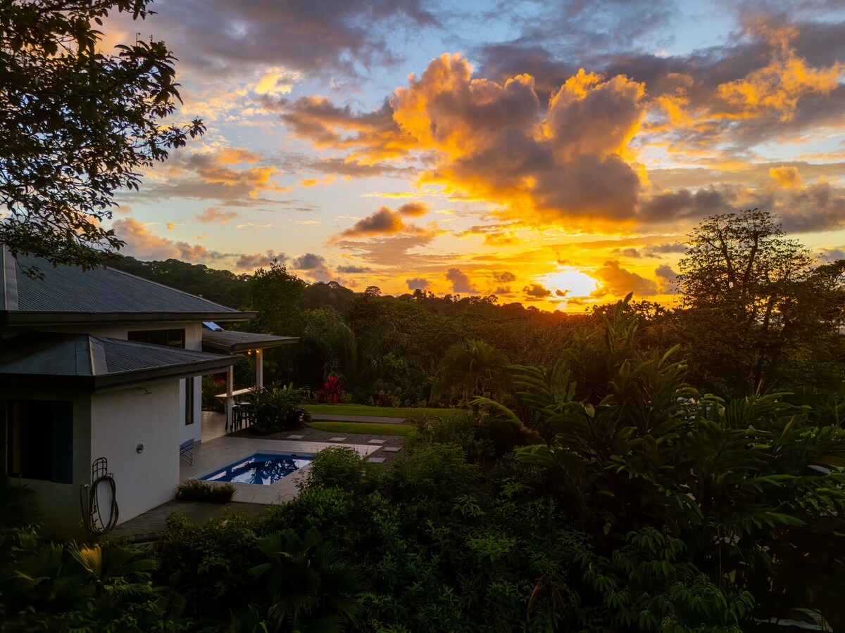Bạn sẽ yêu sự riêng tư, yên tĩnh và tầm nhìn ra Thái Bình Dương và rừng nhiệt đới tuyệt vời của Casa Mariposa. Ngôi nhà thanh lịch, sang trọng, có cổng, thoải mái trên 5,5 mẫu rừng mưa này cao 700 feet so với mực nước biển trong một cộng đồng yên tĩnh gần Công viên quốc gia Marino Ballena. Gần hàng chục nhà hàng, tour du lịch, cửa hàng và bãi biển tuyệt đẹp, cách đường cao tốc trên bãi biển 8 phút lái xe thuận tiện, cần có xe 4x4. Nhắn tin cho tôi để nhân viên hỗ trợ của chúng tôi sắp xếp các tour du lịch được tuyển chọn, đầu bếp riêng và dịch vụ spa!