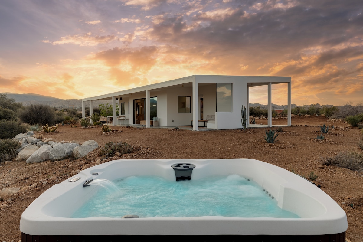 Nexus • Chỗ nghỉ hiện đại phong cách tại Pioneertown, bồn tắm nước nóng