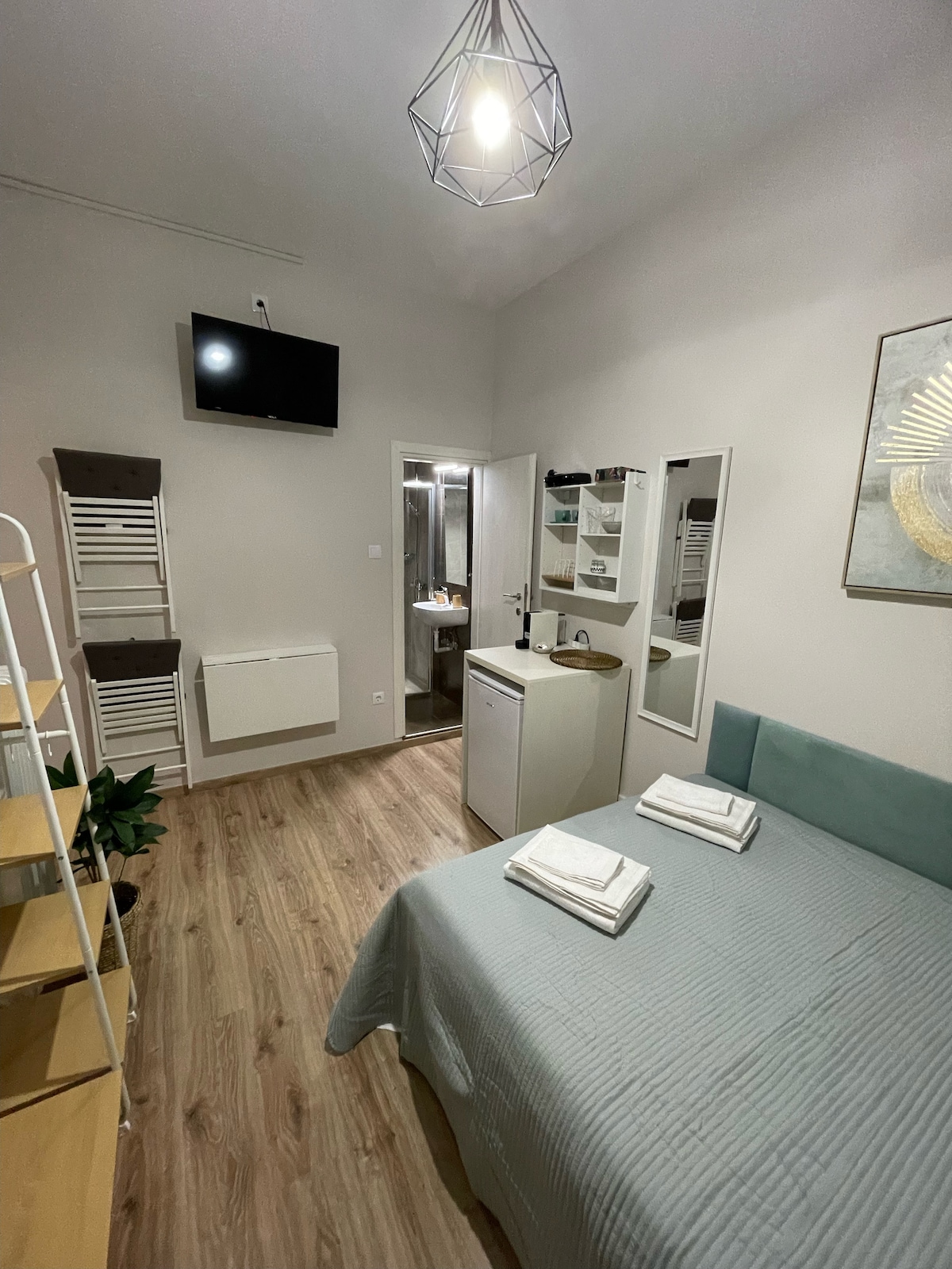 Một không gian được cải tạo hoàn toàn, đặc biệt sáng sủa và hiện đại, trong một tòa nhà tân cổ điển tuyệt đẹp ở quận Mets (Pagrati). Nó nằm cạnh Kallimarmaro (Sân vận động Panathenaic) và rất gần trung tâm Athens. Rất gần các cửa hàng và quán cà phê vì nó chỉ cách Quảng trường Varnava vài mét. Phòng này có giường đôi, bàn làm việc, bàn, TV với đĩa vệ tinh, tủ lạnh và Wi-fi.