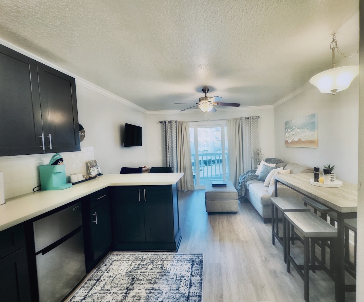 Căn hộ 1 phòng ngủ 1 phòng tắm tầng trên cùng này là nơi hoàn hảo để nghỉ ngơi cho bạn và/hoặc những người thân yêu của bạn, bao gồm cả những người bạn lông lá! Cho dù đó là về phía Nam vào mùa đông (Snow Birds & Winter Texans chào đón!), Ở lại vài ngày trước Du thuyền hay một chuyến đi lãng mạn, căn hộ này sẽ không làm bạn thất vọng! Bếp đầy đủ và ghế sofa ngủ cỡ king. Tọa lạc tại căn hộ Maravilla xinh đẹp trên Đại lộ Seawall với các tiện nghi trên cùng của khu nghỉ dưỡng và bãi biển ngay đối diện với chỗ ở.