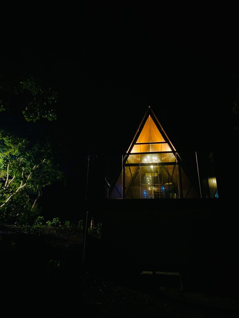 RESERVAS PELO SITE: www.sitiopucon.com.br É uma cabana suspensa de vidro, destinada para atender duas pessoas. O espaço interno é composto por: quarto, banheiro e cozinha, possui vista para a densa natureza existente no espaço exterior e proporciona melhor apreciação do céu, pôr do sol e estrelas. Para complementar a experiência, existe um deck externo com churrasqueira, duas banheiras ao ar livre com opção de água quente, uma rede suspensa e um área destinada a fogueira.