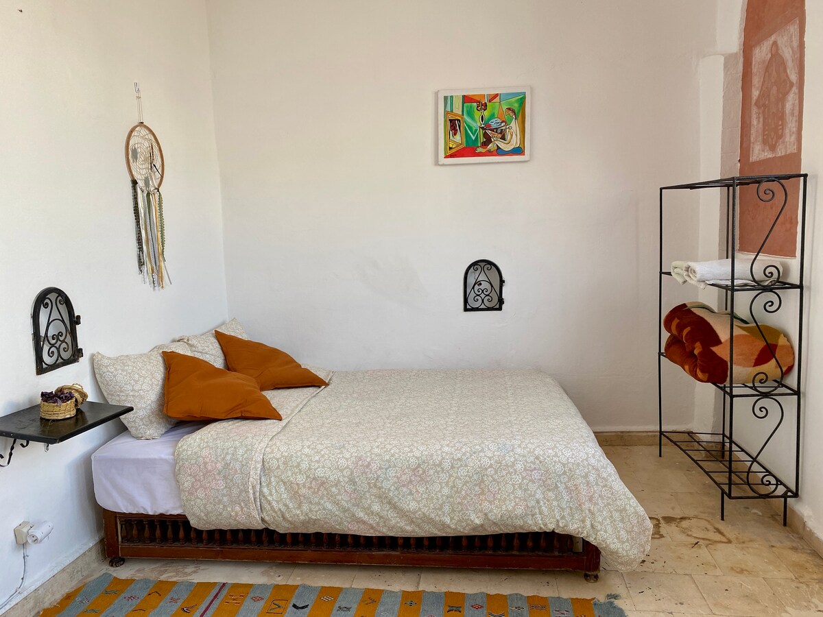 Dans un ancien Ryad restauré, très calme, alliant charme et poésie. Au premier étage, vous bénéficiez d'une vaste chambre élégament décorée et de sa salle de bain en Tadelakt, donnant sur le Patio. Sur le toit, une grande terrasse où à l'abri du vent et du soleil, berçé par le bruit des vagues et le ballet des mouettes, vous êtes dans la magie pure d'Essaouira... !