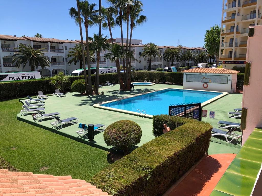 Apartamento completamente reformado, en quinta planta con ascensor. Tiene vista mar. Está a 200 metros de la playa (bahía de Alcudia), 2 minutos a pie. Cocina completamente nueva, con encimera de inducción y microondas. Tiene puertas correderas, de climalit, en salón y dormitorio. TV con canales por satélite (la mayoría de canales alemanes, alguno francés y alguno inglés). Piscina comunitaria. En la zona encontrará todas las facilidades, parking, restaurantes, bares, supermercados, etc.