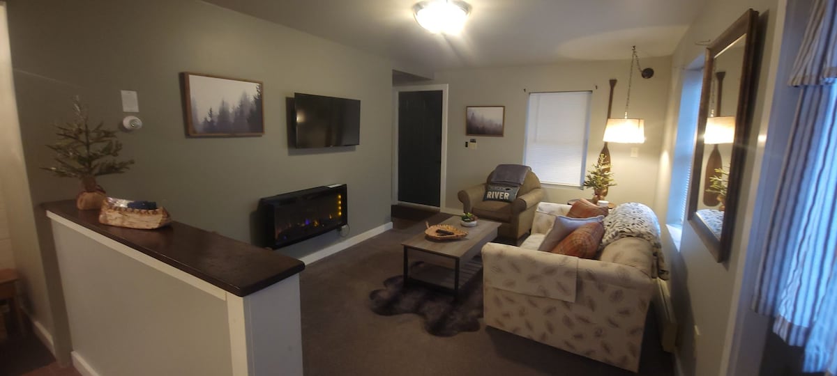 Ấm cúng trong lối thoát Adirondack này. Khi đến nơi, bạn sẽ được chào đón bởi một phòng khách rộng rãi, hai phòng ngủ, một phòng tắm và nhà bếp đầy đủ! Tận hưởng hiên trước với tiếng sông núi ở phía sau trong khi bạn làm bữa tối trên Blackstone hoặc nướng kẹo dẻo trong hố lửa. Ngôi nhà cách những con đường mòn đi bộ đường dài, trượt tuyết đẳng cấp thế giới, Địa điểm Olympic và tất cả những gì Adirondack có vài phút. 45 phút đến hồ Champlain, rất nhiều không gian cho một chiếc thuyền hoặc xe kéo trượt tuyết tại chỗ.