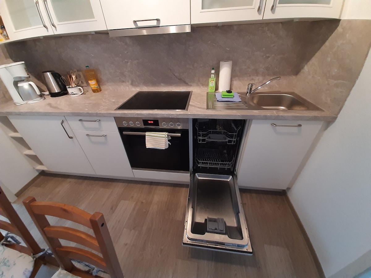 Căn hộ hiện đại, tràn ngập ánh sáng trong ngôi nhà phía sau yên tĩnh: Hoàn toàn mới được cải tạo với các thiết bị nhà bếp chất lượng cao và phòng tắm phong cách với vòi sen. Khái niệm không gian mở với quầy bar trong nhà bếp và phòng ngủ riêng biệt. Bạn nợ vị trí nhà sau tuyệt đối yên bình và riêng tư. Ngoài ra, bạn có toàn quyền sử dụng khu vực phòng tập thể dục của chúng tôi để có các cơ hội thể thao đa năng. Hoàn hảo cho những vị khách muốn kết hợp thư giãn và hoạt động.