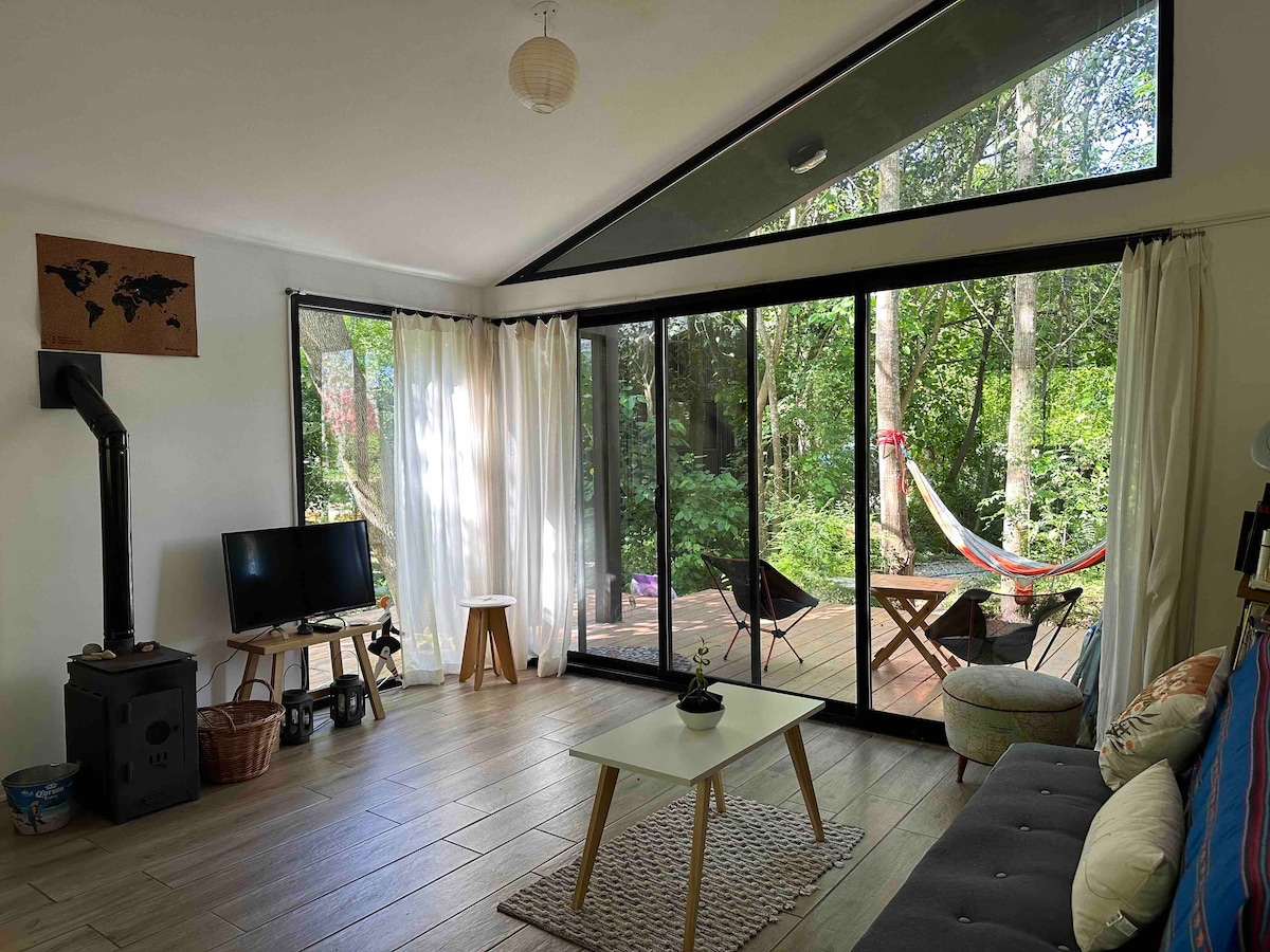 Ngôi nhà mới, cách sông 50 m. Được bao quanh bởi cây bản địa, ngôi nhà được xây dựng bằng vật liệu thiết kế ấm áp, lỗ bằng kính đôi với màn chống muỗi, máy sưởi gỗ, không khí lạnh/nóng, nó có không gian nhà bếp rộng mở, 1 phòng ngủ khép kín (giường đôi) với lối ra boong, 1 phòng ngủ có giường với một chiếc xe đẩy (2 giường đơn) và phòng tắm thứ 2. Wifi x cáp quang. Nướng cho 6 người với dụng cụ. Ghế xếp để ra bãi biển. Chỗ đỗ xe. Không tính phí điện riêng.