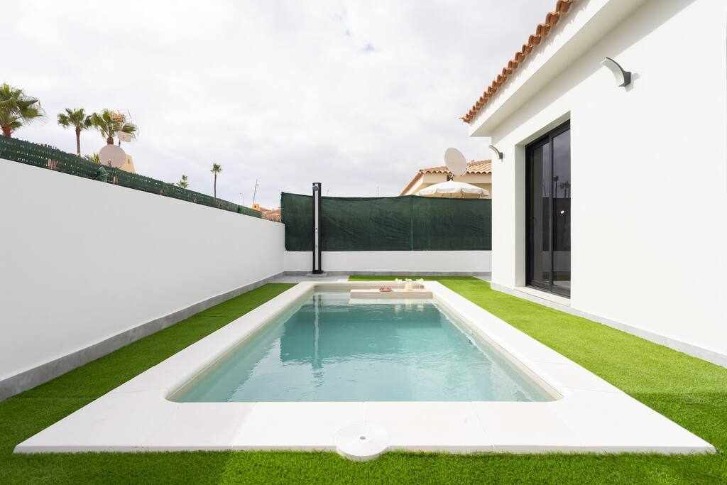 Biệt thự có ba phòng ngủ, hai phòng tắm, phòng khách rộng rãi - nhà bếp và một khu vườn xinh đẹp với hồ bơi không được sưởi ấm. Ở phía nam Tenerife, trời nóng quanh năm nên hồ bơi luôn có thể được sử dụng, mà không cần sưởi ấm. Biệt thự có WiFi và tất cả các tiện nghi cần thiết cho một kỳ nghỉ tuyệt vời. Có điều hòa không khí trong phòng khách và trong tất cả các phòng ngoại trừ một phòng, không có điều hòa không khí nhưng có quạt thủ công.