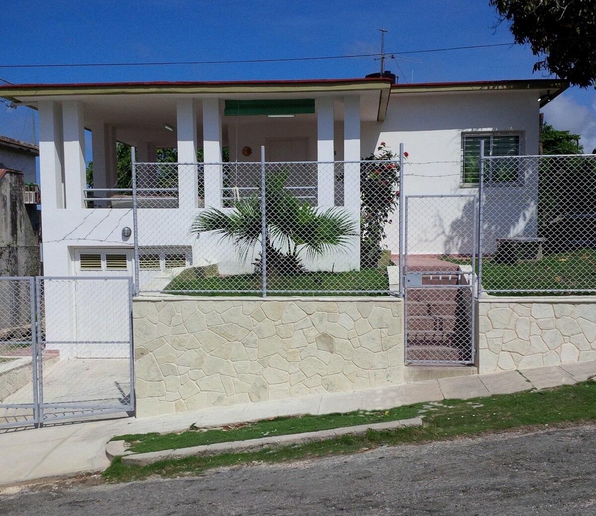 Para usted y su familia! Casa con paneles solares integrados a pasos de playa de arenas blancas y aguas turquesas en Guanabo y a solo minutos del casco histórico de La Habana. Equipada para su descanso y disfrute con amplios jardines tropicales, piscina, parrillada, habitaciones climatizadas, agua caliente, WiFi y opción de reservar con los anfitriones desayuno caribeño, almuerzos o cenas.