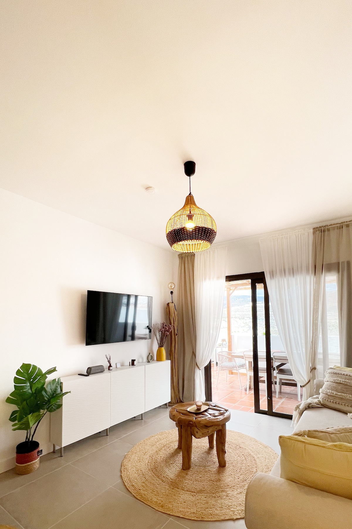 Beautiful apartment in a new modern luxury complex in Palm Mar. It has everything that you need for a comfortable stay: charming bedroom with a large bed (1.80m), 2 bathrooms, fully equipped kitchen (including dishwasher, oven, toaster, coffee machine, microwave, etc.), high speed Wi Fi, Smart TV. One parking place is available also. There are air conditioners in the living room and in the bedroom, which work very well while switching on simultaneously. You will feel cozy on a big and quiet south facing terrace (24m2) with large sofa enjoying nice view of the National reserve and ocean in private and romantic atmosphere. The view of sunset is also magnificent here. The living room is spacious and comfortable, large sofa with many pillows can be easily transformed into a comfortable double bed. There is a beautiful garden in the inner court of the complex and if you wish you can visit fitness center, also you can swim in one of two heated swimming pools or just burn under the sun. There is a supermarket, fruteria and Italian restaurants just across the street and a great amount of restaurants, bars, cafe on walking distance from the complex. You are very welcome!