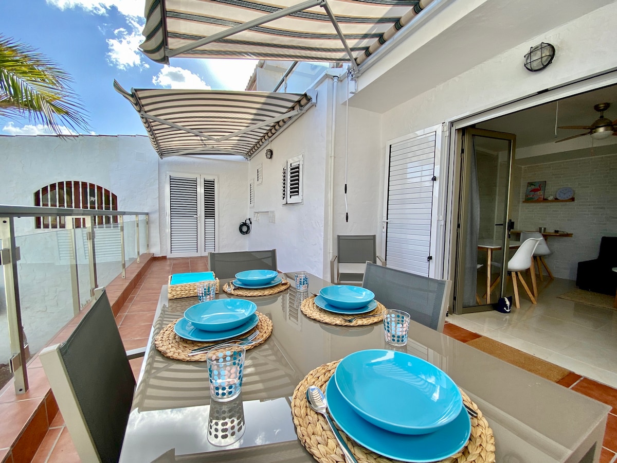 Bungalow hoàn toàn mới được cải tạo này với sân thượng phía Nam đầy nắng nằm ở điểm cao nhất của "Monte Rojo" và không chỉ cung cấp thiết bị chất lượng cao mà còn có mức độ riêng tư cao. Nếu bạn đã leo lên các bậc thang cần thiết, có lẽ bạn sẽ có những bậc thang đẹp và ngoạn mục nhất Nhìn ra biển và cồn cát Maspalomas, và vào buổi tối, một ly rượu vang, với cảnh hoàng hôn khó quên. Internet tốc độ cao và văn phòng di động cho văn phòng tại nhà của bạn với tầm nhìn ra biển.