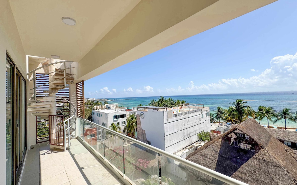 căn penthouse 2 phòng ngủ sang trọng và rộng rãi ở vị trí tốt nhất ở playa del carmen trên đại lộ số 5. Căn penthouse có một trong những tầm nhìn ra bãi biển đẹp nhất trong thị trấn. Nó nằm rất gần bến xe ADO và cách bãi biển một dãy nhà. Căn penthouse có 2 giường cỡ king. Căn penthouse có bếp đầy đủ tiện nghi với mọi thứ bạn cần. Có nhiều cửa hàng và nhà hàng rất gần tòa nhà. Tòa nhà có khu vực chung trên tầng thượng được chia sẻ với các khách khác.