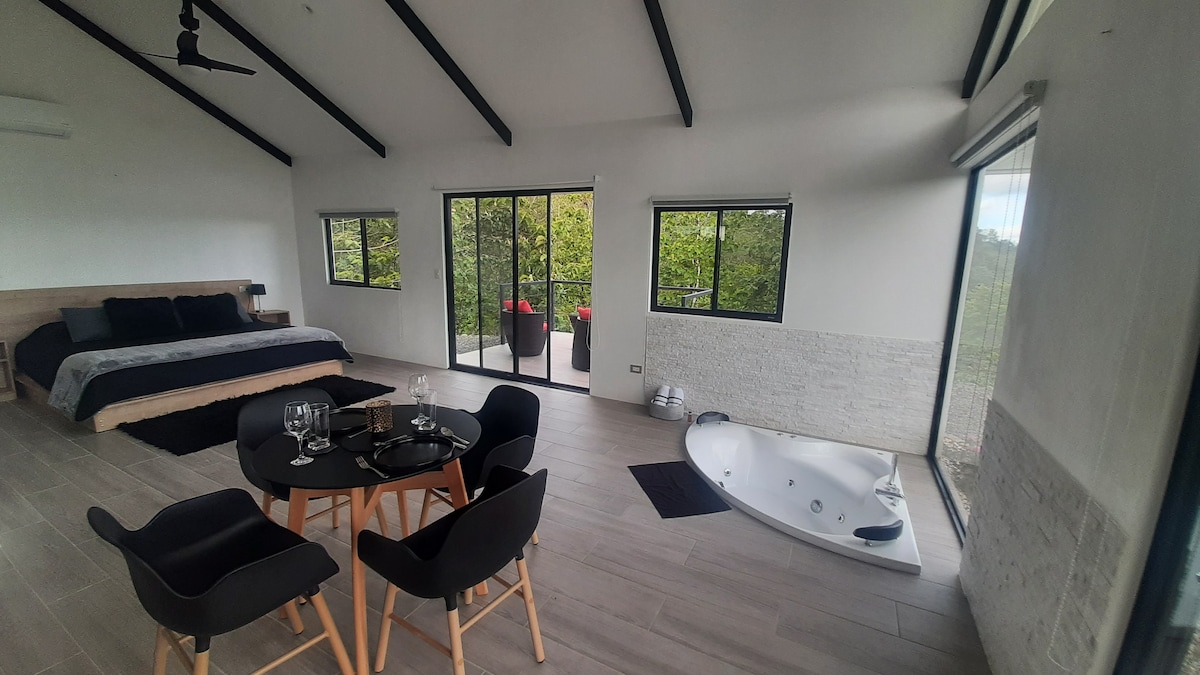 Chào mừng bạn đến với cabin nằm cạnh sông và Vườn quốc gia Carara. Được bao quanh bởi thảm thực vật nhiệt đới tươi tốt, đây là nơi nghỉ ngơi hoàn hảo cho những người yêu thích sự yên tĩnh, động vật hoang dã và đặc biệt là ngắm chim.🦥🍃🦜 Từ cabin, bạn có thể tận hưởng tầm nhìn ra sông và núi, thức dậy với tiếng chim hót và thư giãn với âm thanh tự nhiên của môi trường xung quanh. Khu vực này nổi tiếng với đa dạng sinh học phong phú và là một điểm tuyệt vời để quan sát chim mỏ khóa, vẹt đuôi dài đỏ tươi, chim ruồi và nhiều loài khác.🌿