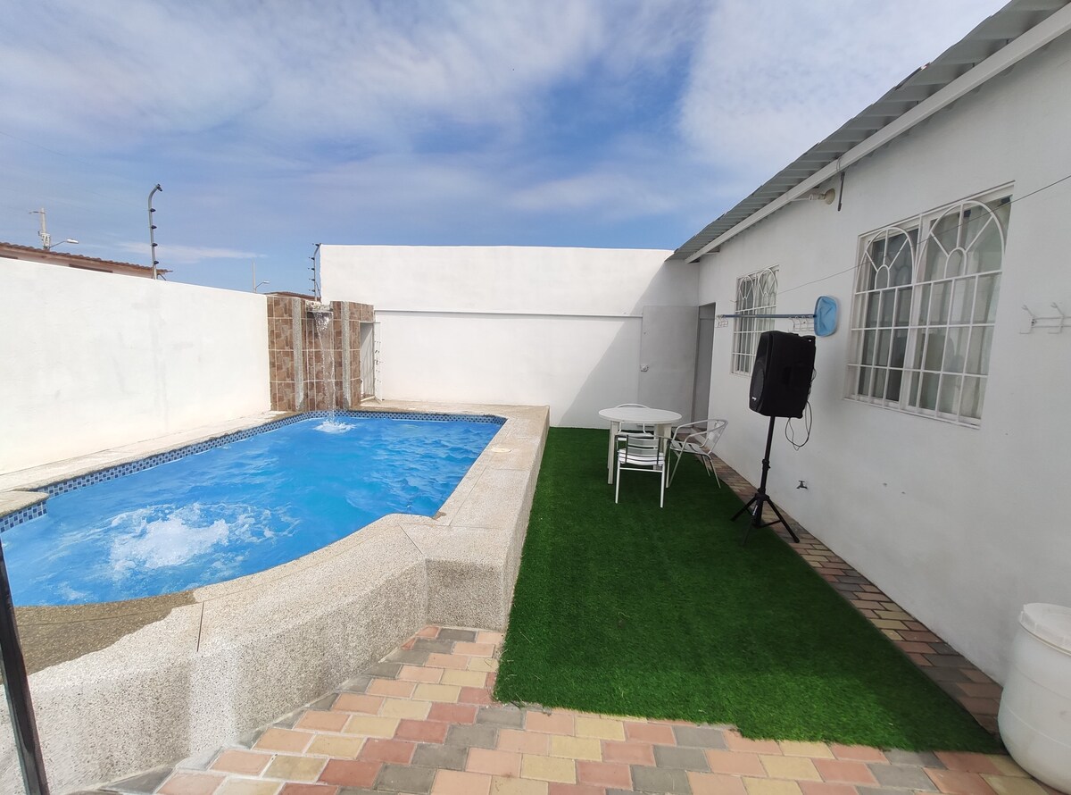 Playas được coi là một trong những vùng khí hậu tốt nhất trên thế giới, ngôi nhà nằm cách bãi biển hai dãy nhà, gần khu mua sắm, đó là một biệt thự thoải mái, các phòng của nó lớn và mát mẻ, mỗi phòng đều có phòng tắm riêng, nó có một hồ bơi với thác nước, pergola với nướng thịt nướng, lý tưởng để thưởng thức như một gia đình, có bãi đỗ xe rộng rãi