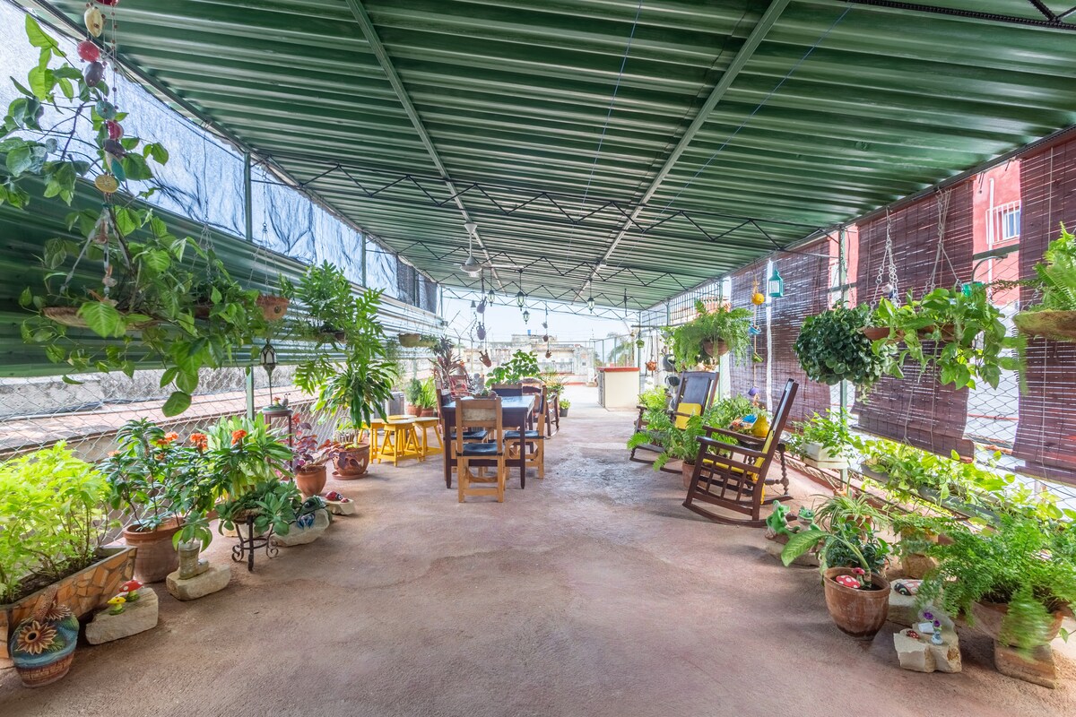 Đây là một ngôi nhà được xây dựng vào năm 1954 với 2 tầng ở khu vực cao của thành phố với tầm nhìn đẹp ra Havana , rộng rãi và thoải mái với 3 sân thượng , nhà bếp được trang bị, ở trung tâm Havana mọi thứ đều gần, trong khu phố New Vedado rất gần rừng Habana, sở thú và Plaza de la Revolución. Ngôi nhà thuộc sở hữu của cha mẹ tôi và bây giờ là công việc kinh doanh của gia đình chúng tôi mà chúng tôi tự hào. Chúng tôi có hệ thống điện dự phòng với các tấm pin mặt trời