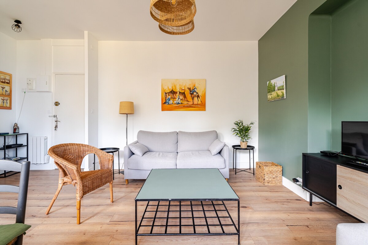 Nằm ngay trung tâm Erquy Hai bước từ tất cả các cửa hàng và 200 m từ biển Căn hộ 53 m2 với ban công được tân trang lại bởi một nhà thiết kế nội thất. Căn hộ có 1 phòng ngủ với giường cỡ King (cao cấp), 1 giường trẻ em và 1 ghế sofa chuyển đổi (160/200) trong phòng khách Bãi đỗ xe có sẵn dễ dàng và miễn phí trước căn hộ. Hãy đến và khám phá bờ biển ngọc lục bảo xinh đẹp của chúng tôi, từ Val-André đến St-Malo. Quy trình khử trùng phù hợp với tình hình vệ sinh.