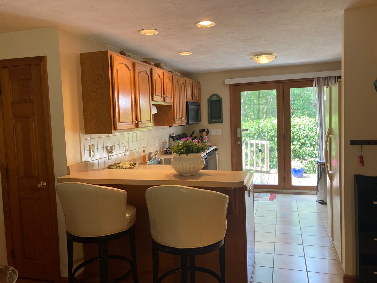 Nơi nghỉ ngơi hoàn hảo ở Falmouth cho tất cả các mùa! Nhà của chúng tôi có vị trí đẹp nhìn ra trang trại Bourne và chúng tôi chỉ cách Con đường xe đạp biển Shining đẹp như tranh vẽ vài bước chân. Tận hưởng chuyến đi 8,5 dặm tuyệt đẹp uốn lượn theo cách của bạn qua đầm lầy Sippewisset và dọc theo bờ biển đến ngôi làng ven biển Woods Hole. Nơi bạn có thể thưởng thức các nhà hàng ,cửa hàng và học tập khoa học địa phương hoặc nhảy lên phà đến Vườn nho Marta.