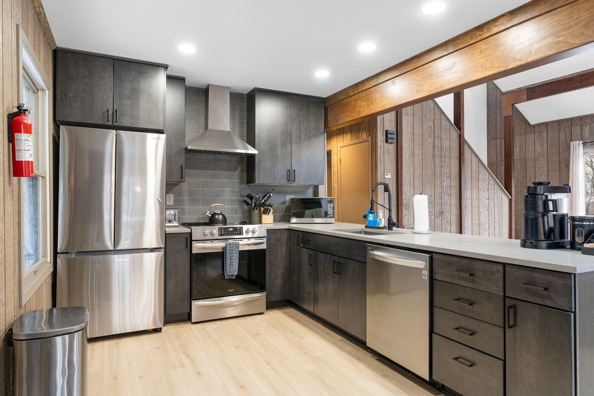 Hoàn toàn mới. Cải tạo 24/2/2026! Nhà gỗ chalet mới được tân trang, hiện đại, rộng rãi và thân thiện với gia đình trong một cộng đồng đầy đủ tiện nghi Nơi nghỉ ngơi riêng 3000 sqft 4 giường 3 phòng tắm trên 1,5 mẫu Anh với tầm nhìn không bị cản trở vào khu bảo tồn rừng được bảo vệ Tận hưởng phòng xông hơi, bồn tắm nước nóng mới, phòng trò chơi, lò sưởi, hố lửa Khu dân cư có 5 hồ, 3 bãi biển, hồ câu cá, 2 hồ bơi, sân chơi, sân tennis và bóng rổ Những khoảnh khắc từ việc ngắm chim, đi bộ đường dài, nhà máy rượu vang, trượt tuyết, công viên nước trong nhà, chơi golf và sòng bạc